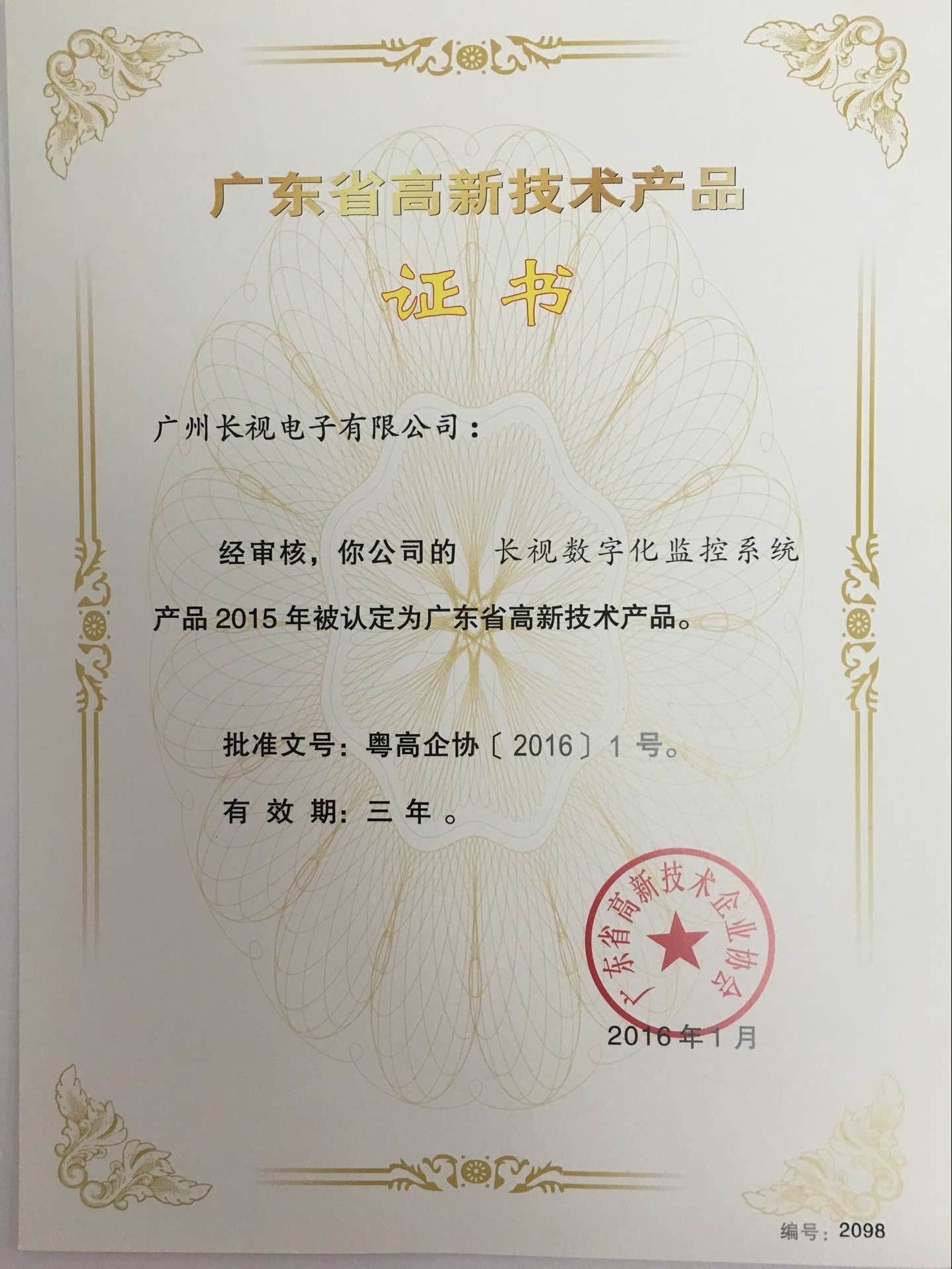 3.“長視數(shù)字化監(jiān)控系統(tǒng)”被認定為廣東省高新技術(shù)產(chǎn)品